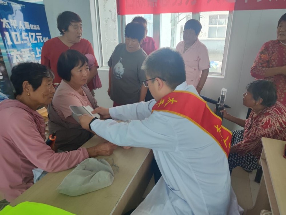 現(xiàn)場同時(shí)設(shè)置了義診專區(qū),為漁民提供免費(fèi)血壓檢測(cè)服務(wù)。工作人員借機(jī)以當(dāng)?shù)胤窖越Y(jié)合宣傳折頁,通俗易懂地講解反洗錢、防詐騙等知識(shí),實(shí)現(xiàn)健康關(guān)懷與金融教育相結(jié)合。