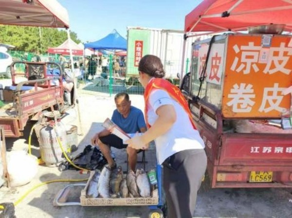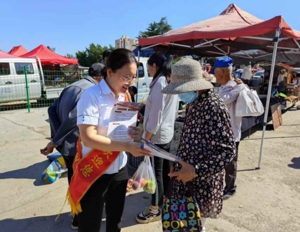太平人壽威海文登服務(wù)部工作人員身著統(tǒng)一的服裝,面帶微笑,耐心地為每一位攤主或者前來(lái)咨詢的群眾解答疑惑,發(fā)放金融知識(shí)宣傳手冊(cè)和傳單。普及基礎(chǔ)的金融常識(shí)、如何防范金融詐騙的技巧,內(nèi)容豐富多樣,貼近百姓生活。
