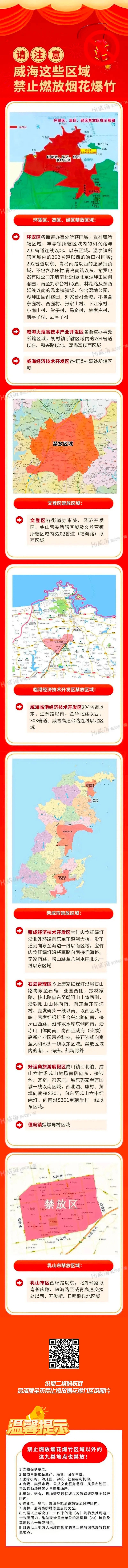 為維護良好生態(tài)環(huán)境,保障全市人民群眾生命財產安全,請您自覺遵守《威海市禁止燃放煙花爆竹辦法》,禁放區(qū)域內禁止燃放煙花爆竹,非禁放區(qū)域內除《威海市禁止燃放煙花爆竹辦法》第八條中規(guī)定的情形以外可以燃放煙花爆竹。在非禁放區(qū)域內要依法文明燃放,嚴防發(fā)生人員大規(guī)模聚集踩踏、爆炸爆燃及各類公共安全事件。