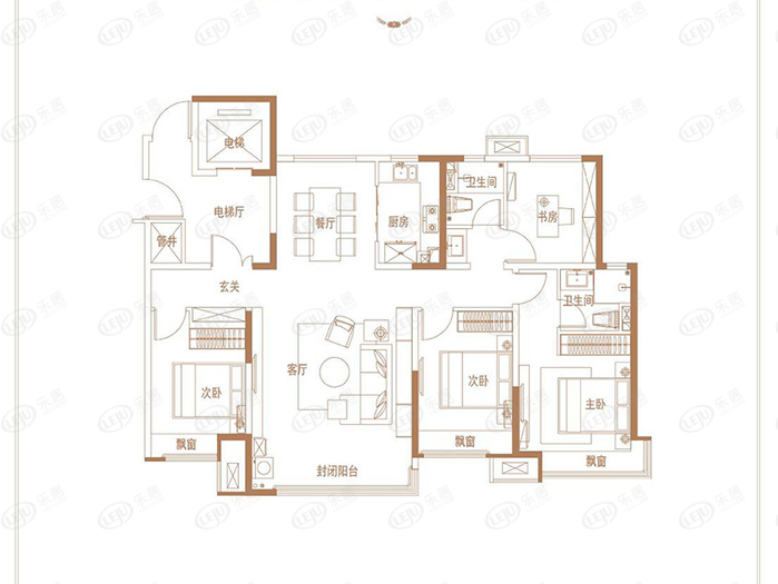 ②約6米大橫廳(以實(shí)際為準(zhǔn)),房間內(nèi)基本沒有浪費(fèi)面積,三個(gè)房間飄窗可以完全拓展利用。北向書房采光充足,動(dòng)靜分離。