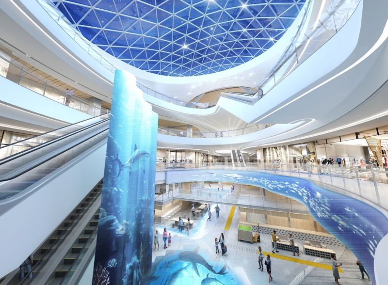 鯤鵬水擊,浩浩湯湯。威海灣城市綜合體以“鯨魚出?!睘殪`感,其中“鯨脊”部分為大跨度拱結(jié)構(gòu)配合預(yù)應(yīng)力空心樓板構(gòu)成,為全國(guó)首創(chuàng),其背后蘊(yùn)含的包容、博愛、拼搏等海洋文化,也為該項(xiàng)目增添了學(xué)養(yǎng)深厚的極致韻味。定位城市功能新提升、城市形象重塑造的威海灣城市綜合體,致力于創(chuàng)造一個(gè)多元化的現(xiàn)代城市商業(yè)空間。