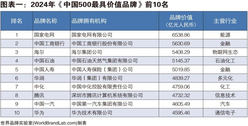 世界品牌實(shí)驗(yàn)室發(fā)布2024年中國(guó)500最具價(jià)值品牌,國(guó)家電網(wǎng)、中國(guó)工商銀行和海爾名列三甲,108個(gè)中國(guó)品牌的價(jià)值超過1000億。