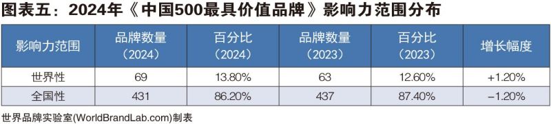 據(jù)世界品牌實(shí)驗(yàn)室的專家組分析,一個(gè)區(qū)域的競(jìng)爭(zhēng)實(shí)力,主要取決于其比較優(yōu)勢(shì),而品牌效益直接影響著地區(qū)比較優(yōu)勢(shì)的形成和發(fā)展。品牌是一個(gè)地區(qū)發(fā)展的重要標(biāo)志,品牌與區(qū)域經(jīng)濟(jì)的增長(zhǎng)是相互聯(lián)動(dòng)的。從本屆《中國(guó)500最具價(jià)值品牌》區(qū)域分布來看,北京有91個(gè)品牌入選,名列第一,因?yàn)橼A利能力強(qiáng)的央企總部集中在北京;廣東和上海分別有79個(gè)和42個(gè)品牌入選,位居第二和第三。根據(jù)入選品牌影響力范圍大小,可按照全國(guó)性、世界性品牌進(jìn)行劃分。榜單中具有全國(guó)范圍影響力的品牌有431個(gè),占86.20%;具有世界性影響力的品牌數(shù)為69個(gè),占13.80%。